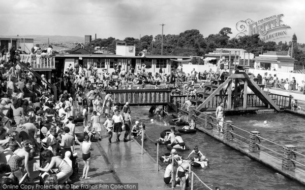 ‘a village in South Gloucestershire’ which was merely a farm until the railway arrived in 1900 whereafter it was turned into a seaside resort. It adds that there was ‘a swimming pool called the “Blue Lagoon”, a boating lake and the Beach Comber Strip Club’. It’s changed a bit now.