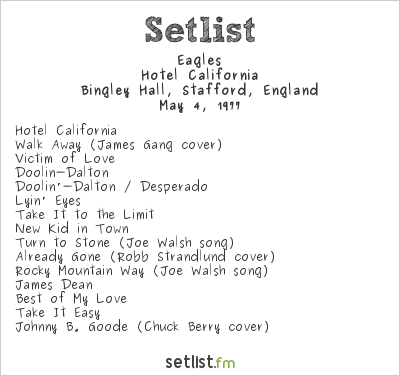 Oh, what a night. 4th May 1977, Stafford Bingley Hall and it’s The Eagles touring Hotel California. I’m there with old pal Nick, who died earlier this year, seeing the band for the second and last time, the first being Wembley Stadium two years previously where they were third on the bill to The Beach Boys and Elton John. It’s horrendous getting to the gig, having to change trains at Birmingham New Street, but in those days you can still get home to Bristol on the train. Hotel California is undoubtedly their last great album, stuffed as it is with classic songs, but they only play three tracks from that album and disappointingly not The Last Resort, arguably the band’s greatest song. But the show in this enormous cow shed in the middle of nowhere is a triumph and when Don Henley sings Desperado, there is barely a dry eye in the house. How things have changed because when Henley, in his 79th year, sings the same song, he doesn’t appear to be singing it at all.