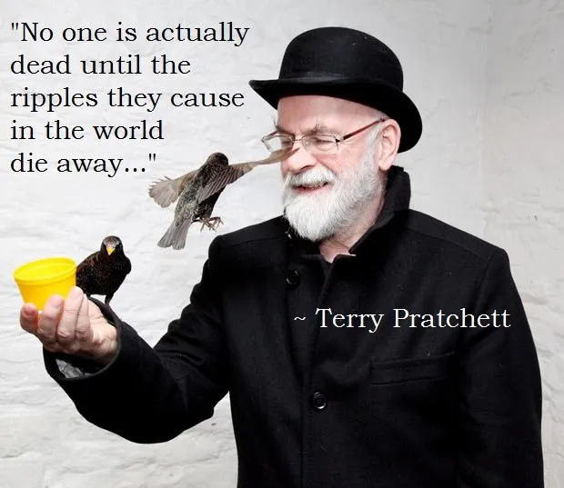 Sure, no one here gets out alive and of course death is pretty final, unfortunately. But what you did and who you were keeps the memory, the ripples, going. And to that extent, Pratchett was right: No-one is actually dead until the ripples they cause in the world die away.