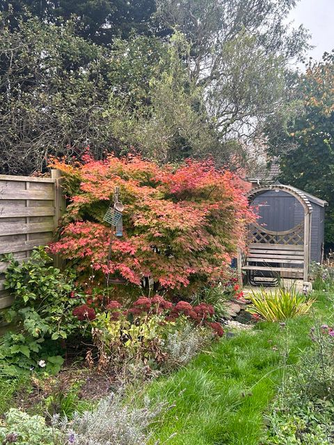 The change to winter colours is slow, but not glacially so. You won’t notice the change on a daily basis but week by week, in turns into the November colours it is today. This year, this autumn to be specific, her Acer, as you can see from the header photo, is more beautiful and, well, autumnal than ever.