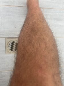 I am now close to the that time of the year when I have to stop pretending it’s still summer and even early autumn by donning my trackies and jeans, putting my shorts away for a few long months. I’ve made it to November this year but I know from my increasingly cold feet the pretence cannot go on for much longer. Ladies, I know this must be very disappointing for you, but here’s a photo of my leg to keep you going until the spring. (The white bit is a stud mark acquired during my stellar football career.)