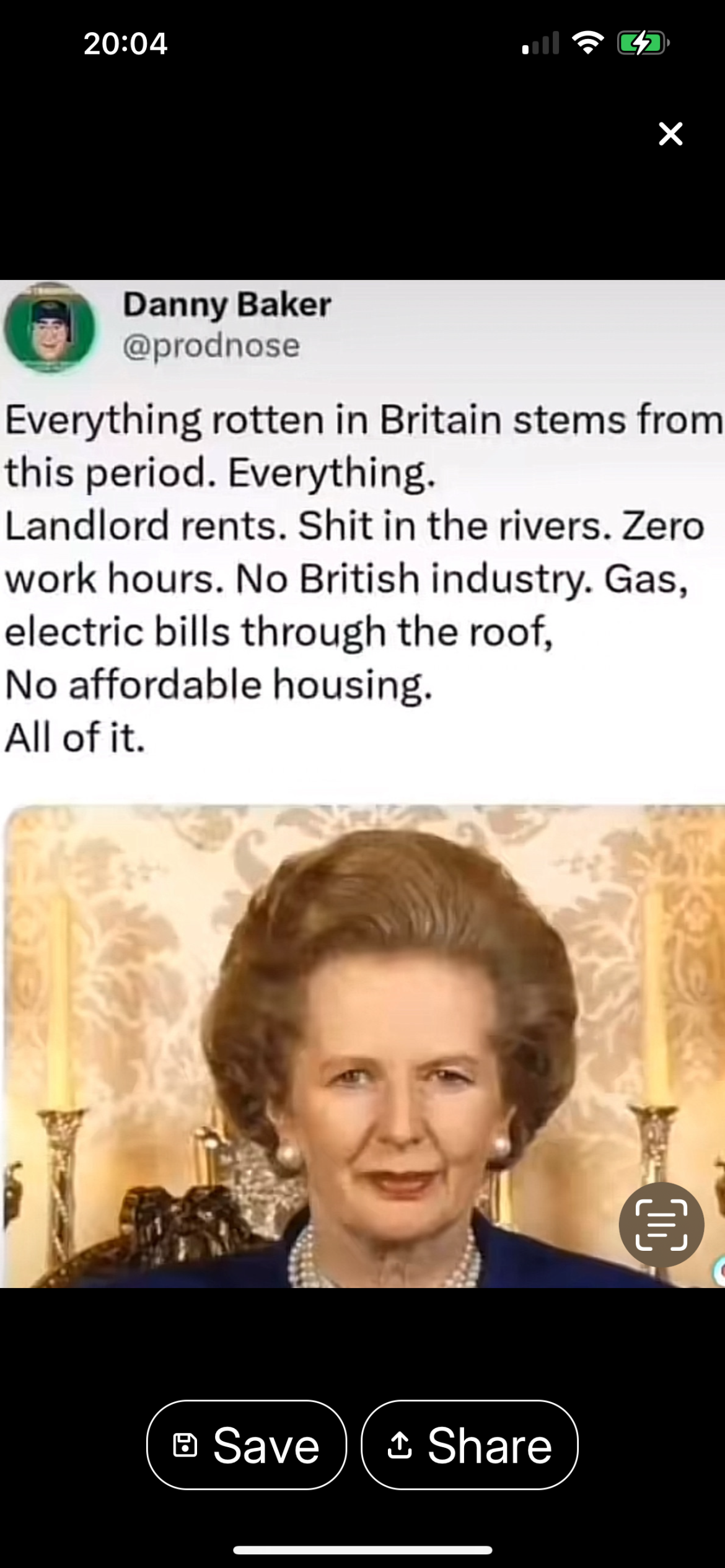 Incredible that it took a diminished former DJ and media presenter to point out the reality of today’s world, explaining how the actions of someone seen by many as an historical figure who has been dead for 12 years has shaped the country in which we live today. The Tory years from 2010 to 2024 unquestionably made things far, far worse but the rot started when Margaret Thatcher became Tory leader and our prime minister. We should never forget and I for one am grateful for Danny Baker’s timely reminder.
