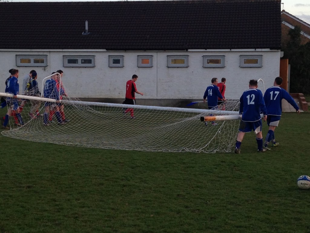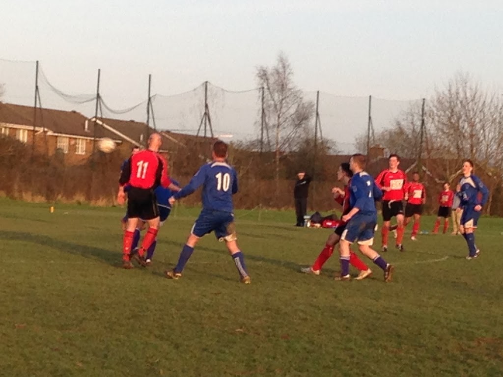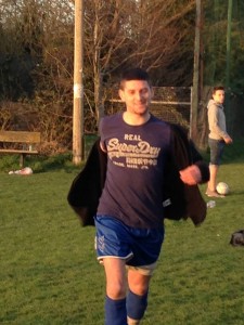 The home team’s persistence paid off soon after when Nathan Daniels, whose father for once had not left early to open up the bar, slotted over a lovely cross from the left and ‘Big’ Jordan Russell scored with a spectacular diving header which caused a small earthquake in the village.